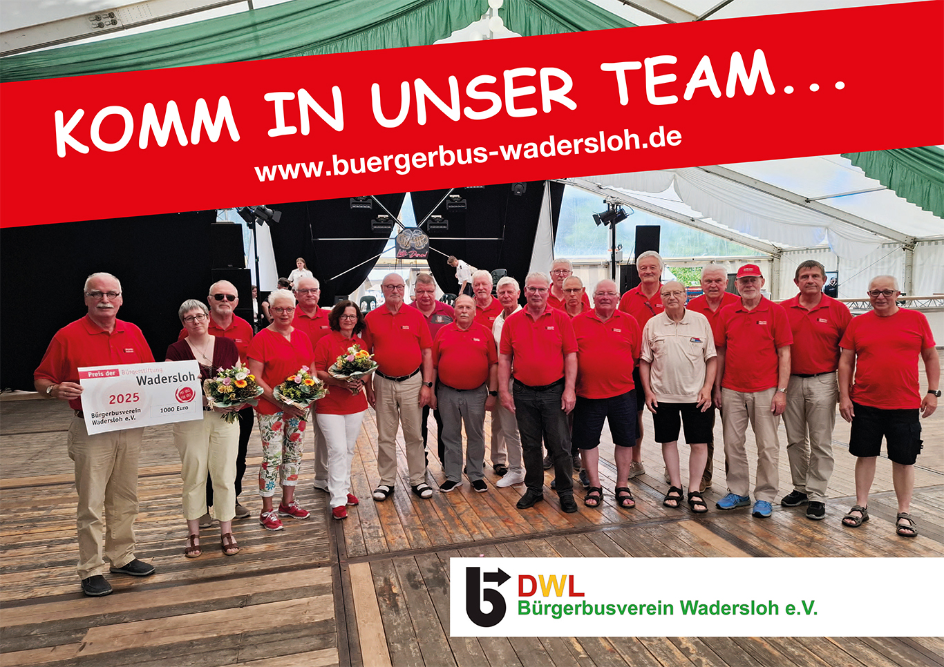 Alle Kosten, die mit der Erlangung des Personenbeförderungsscheines entstehen, trägt der Bürgerbusverein Wadersloh e.V.